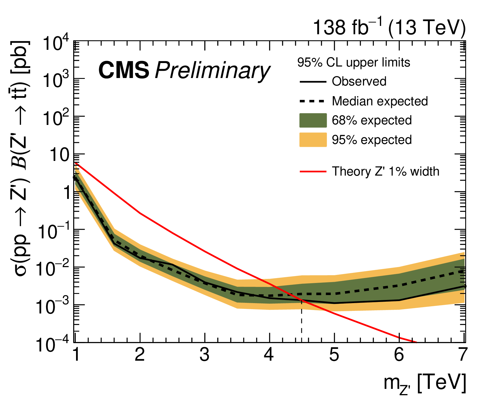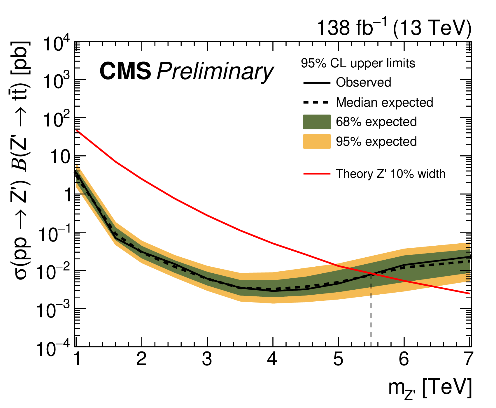 Production of Z' particles decaying into a $ {\mathrm{t}\overline{\mathrm{t}}} $ pair, which subsequently decays hadronically. |