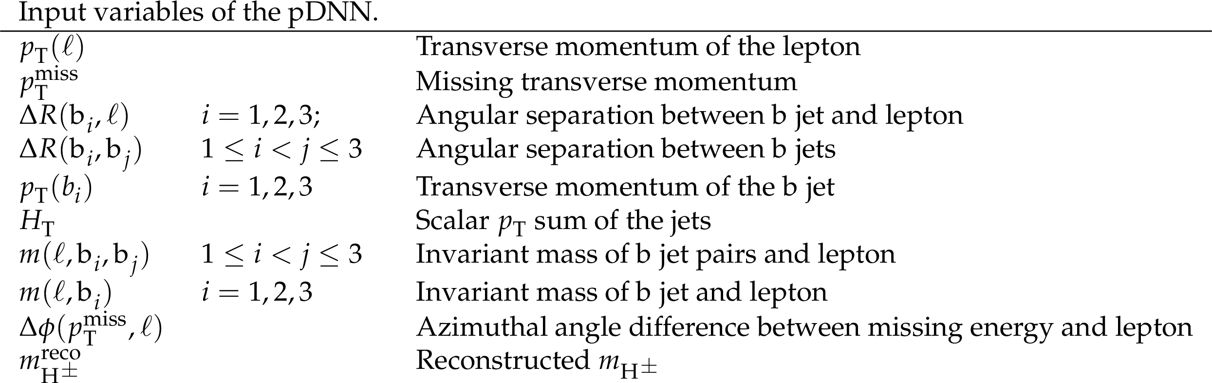 Input variables of the pDNN$_{3b} $ and pDNN$_{2b} $. Indices run up to including 3 for pDNN$_{3b} $ and 2 for pDNN$_{2b} $. |