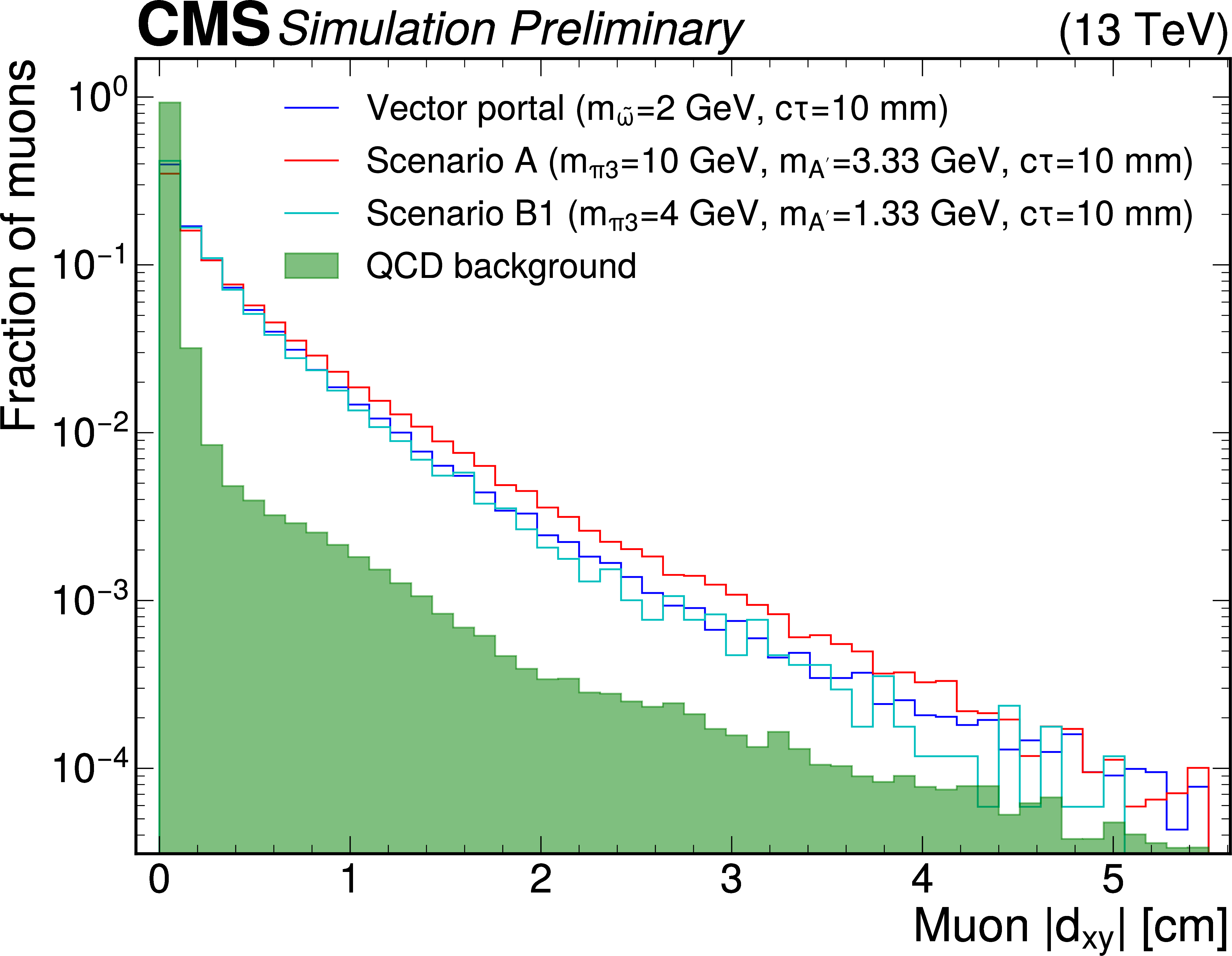 | Abstract: A search for signatures of a dark analog to quantum chromodynamics is performed. The analysis targets long-lived dark mesons that decay into standard model particles with a high branching fraction to muons. A unique dataset with $ 10^{10} $ B meson events is used. It was collected by the CMS experiment at the CERN LHC in 2018 using displaced muon triggers, which have a high trigger efficiency for the signal models. Resonant dimuon signatures are searched for, with both pointing and non-pointing topologies. No significant excess is observed beyond the standard model expectation. Upper limits on the branching ratio of Higgs boson decays to dark partons are determined to be less than $ 10^{-3} $, at 95% confidence level, surpassing and extending existing limits for the mean proper lifetime of less than approximately 0.1 $ \mathrm{m} $ for a mass as low as 2 GeV. First limits are set for extended dark shower models, probing the low-mass region down to 0.33 $ \textrm{GeV} $. | ||