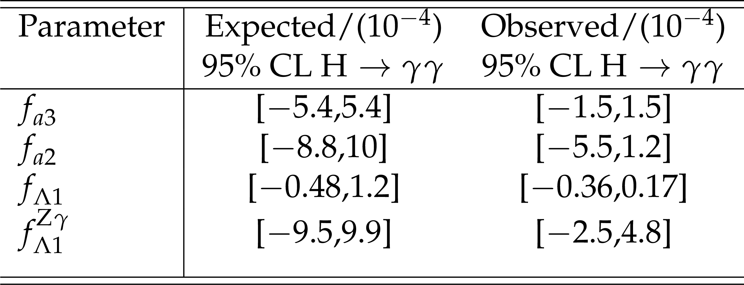 Summary of expected and observed allowed 95% CL intervals on $ \mathrm{H}\mathrm{V}\mathrm{V} $ anomalous coupling parameters for the $ \mathrm{H}\mathrm{V}\mathrm{V} $ analysis. |