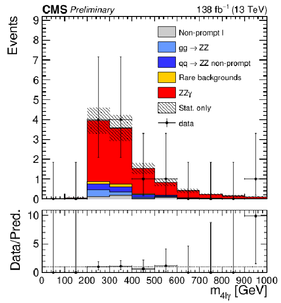 | Observation of 4$ \ell\gamma $ and evidence of $ ZZ\gamma $ production in proton-proton collisions at $ \sqrt{s} = $ 13 TeV | ||