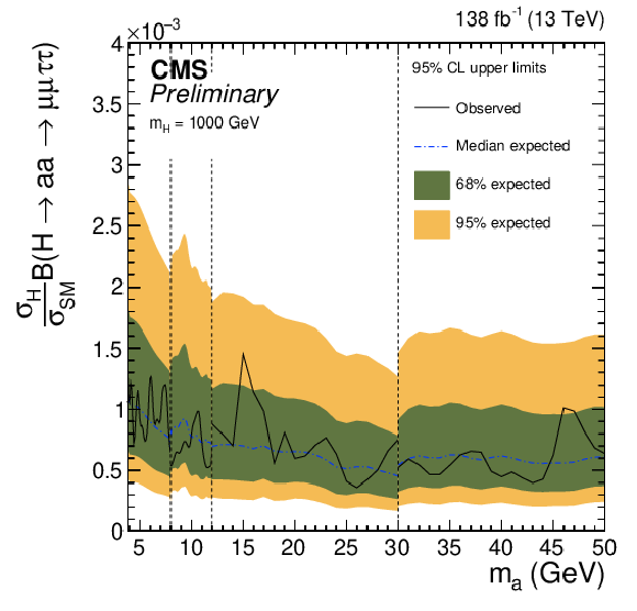 | 42 | CMS Collaboration | Search for exotic decays of the Higgs boson to a pair of pseudoscalars in the $ \mu\mu $bb and $ \tau\tau $bb final states | EPJC 84 (2024) 493 | CMS-HIG-22-007 2402.13358 |