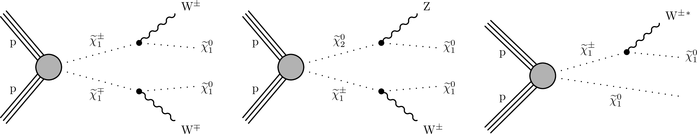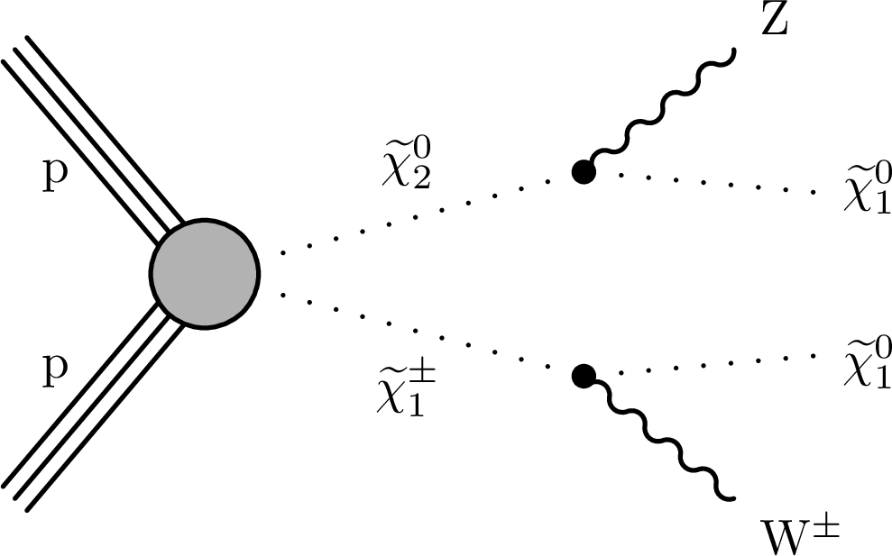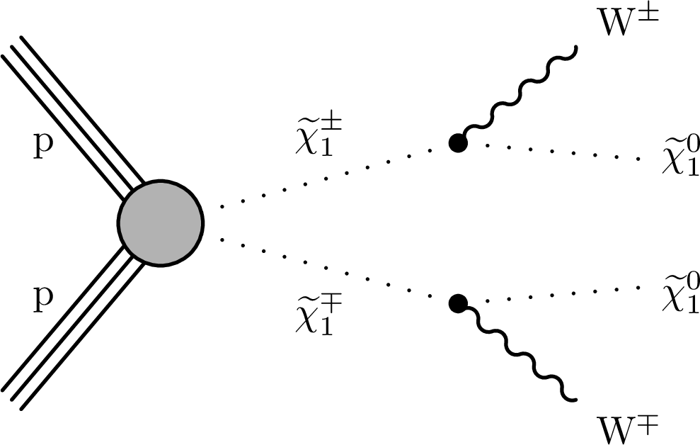 Feynman diagrams for electroweakino pair production. |