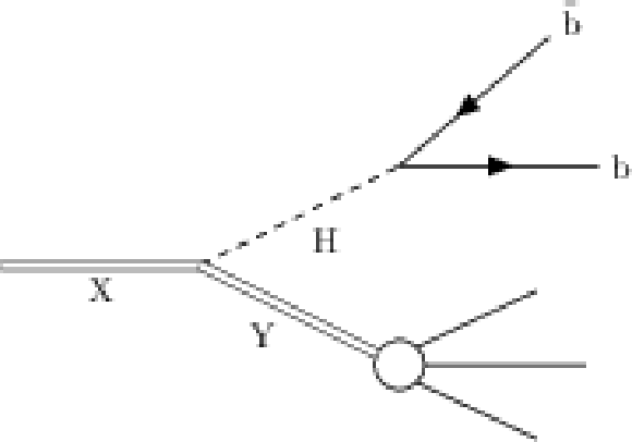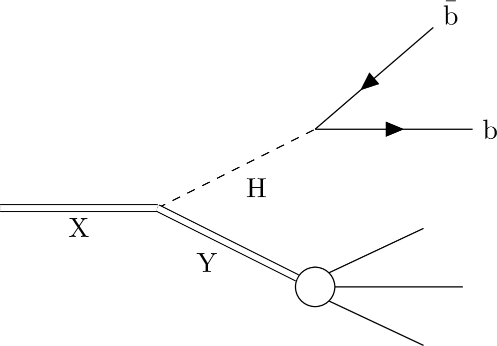 An illustration showing the signal targeted by this analysis. The final state consists of a large-radius jet originating from H decaying to $ \mathrm{b}\overline{\mathrm{b}} $ and another large-radius jet originating from the decay of a second particle, Y. |