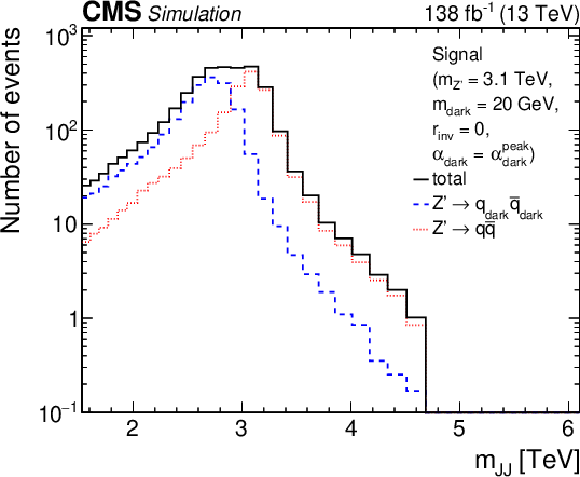 A qualitative depiction of the phenomenological behavior of dark QCD models depending on the fraction of invisible particles within a jet $ r_{\text{inv}} $ and the proper decay length of dark hadrons c$ \tau_{\text{dark}} $. The $ r_{\text{inv}} $ parameter is defined in Section 2.2.5.1. |