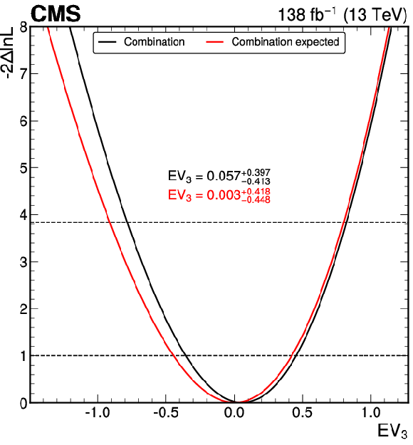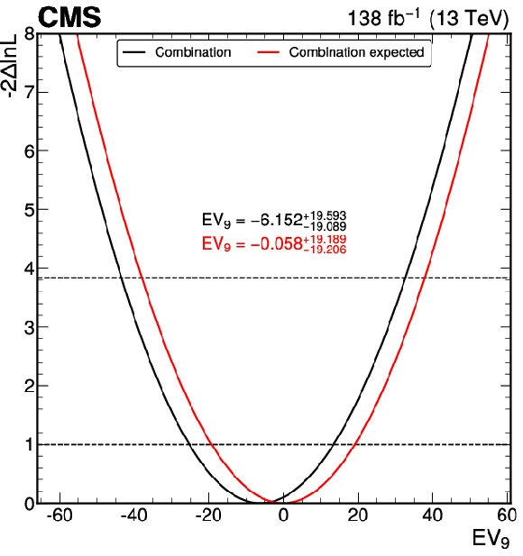 Observed and expected profile likelihood scans for eigenvectors 8 and 9. |
