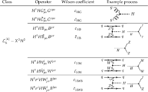 List of $ X^2H^2 $ operators and corresponding Wilson coefficients. Example Feynman diagrams of the processes affected by the operators are shown in the rightmost column. |