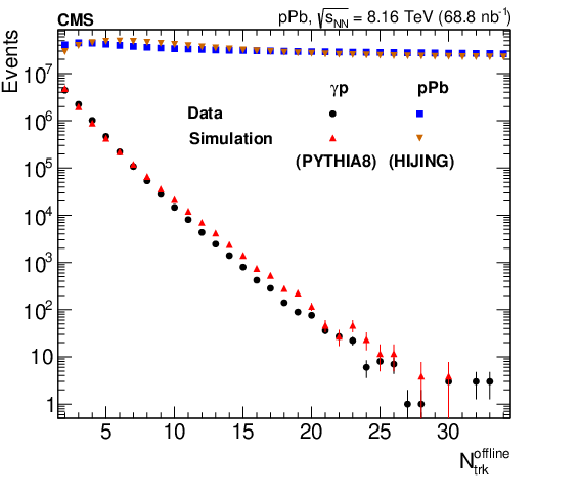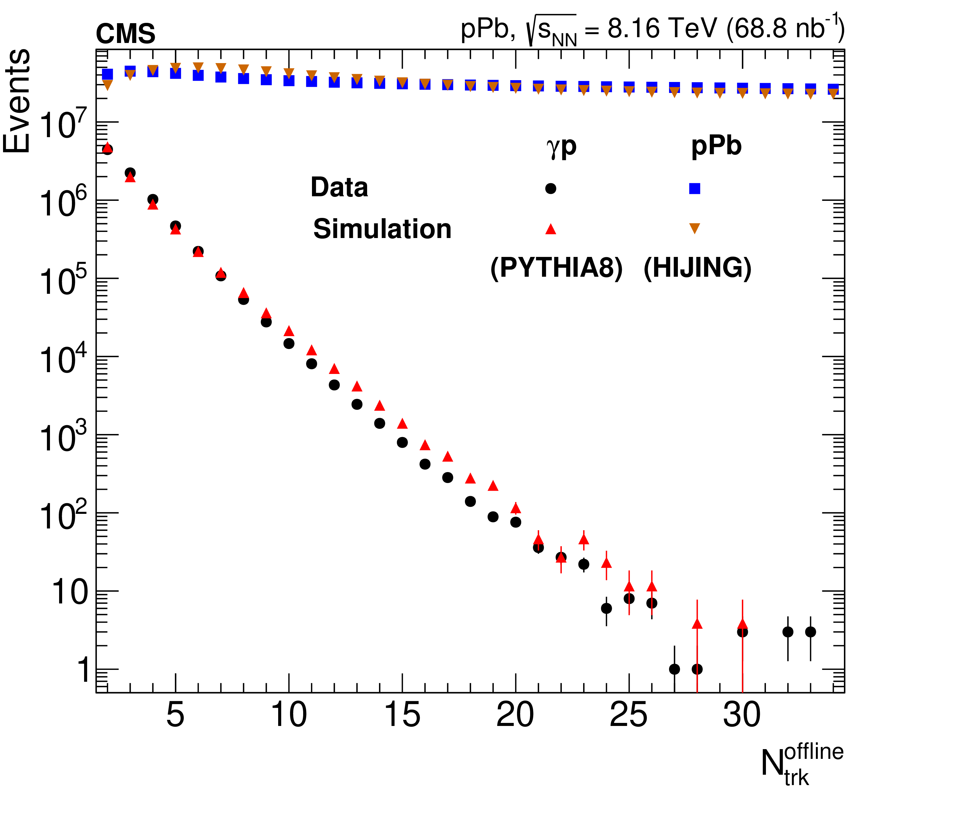 The L1 and HLT trigger efficiencies for the high-multiplicity triggers as functions of $ N_\text{trk}^\text{offline} $ for 5.02 TeV pPb collision data taking in the year of 2013. Figure adapted from Ref. [110] |