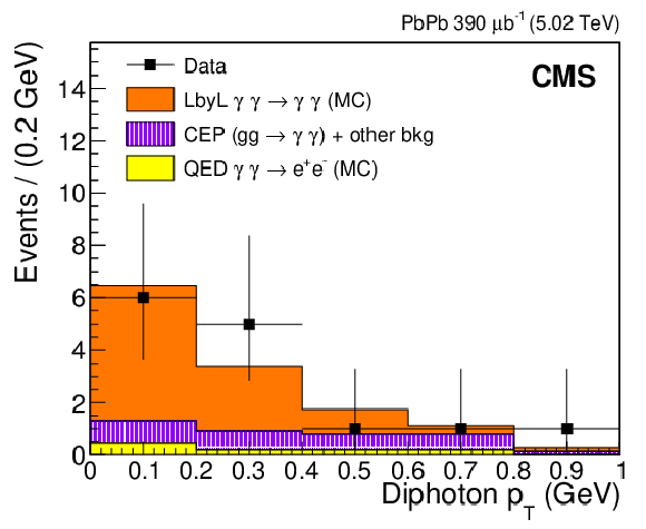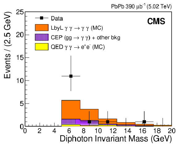 | 548 | CMS Collaboration | Evidence for light-by-light scattering and searches for axion-like particles in ultraperipheral PbPb collisions at $ \sqrt{\smash[b]{s_{_{\mathrm{NN}}}}} = $ 5.02 TeV | PLB 797 (2019) 134826 | CMS-FSQ-16-012 1810.04602 |