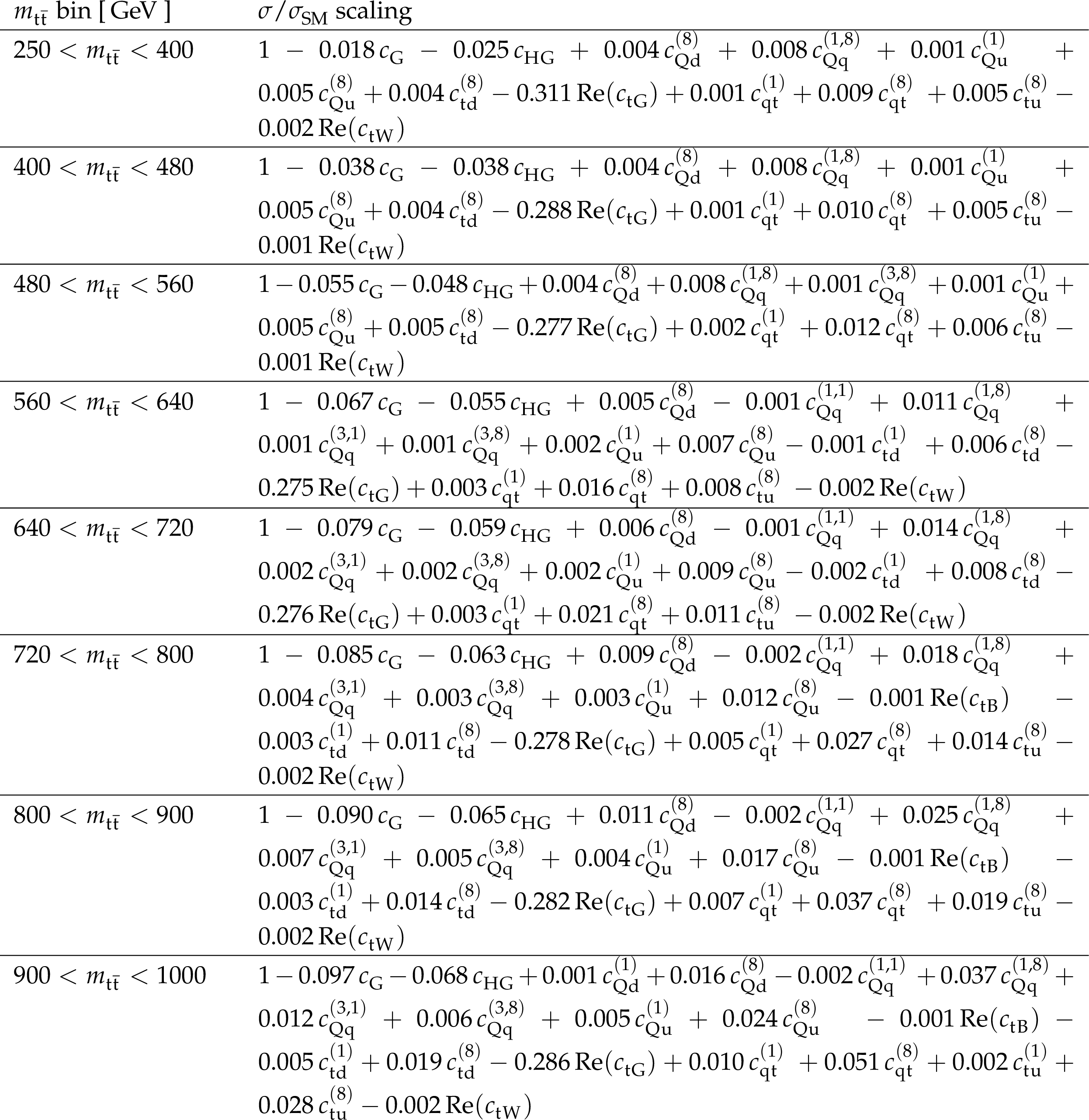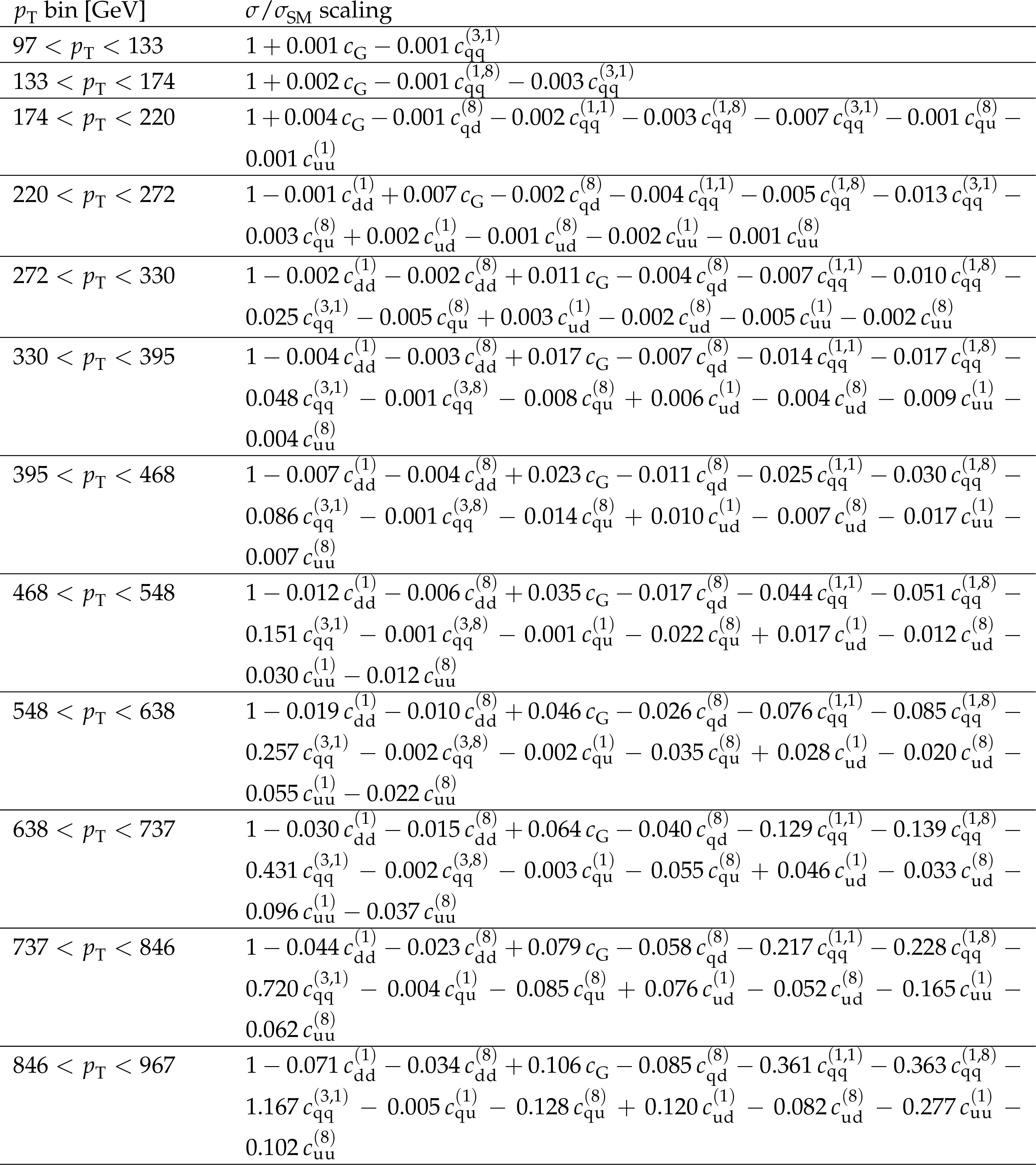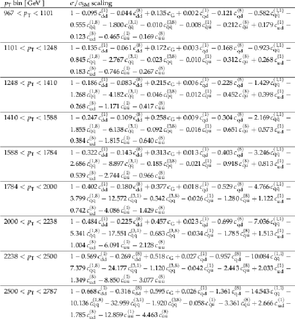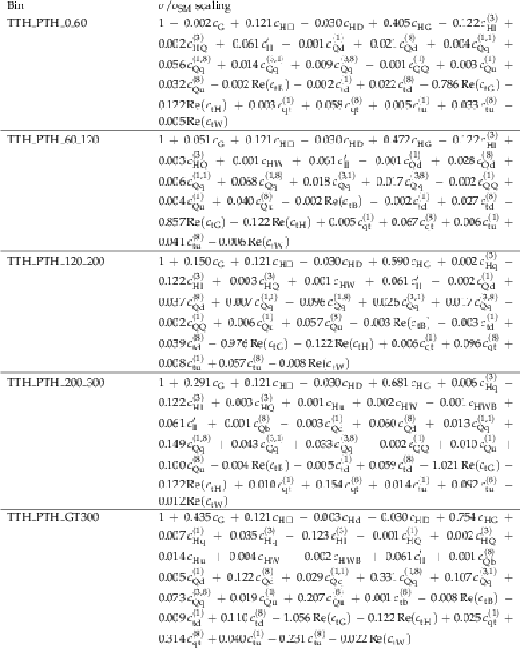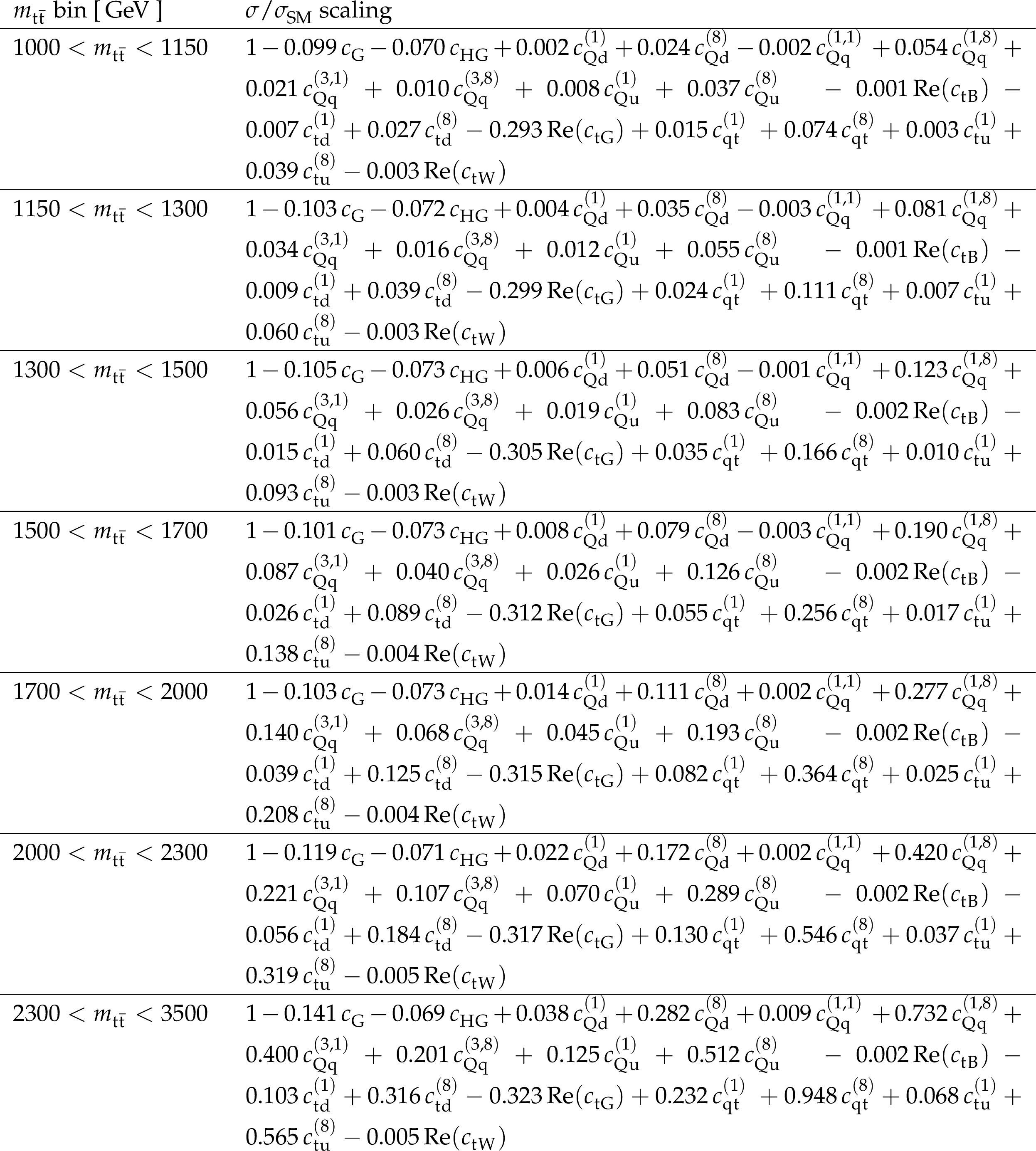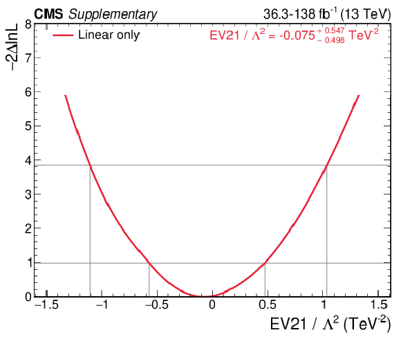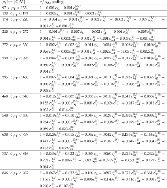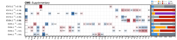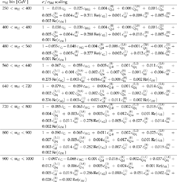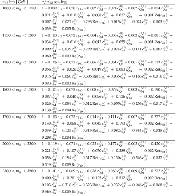 Definitions of eigenvectors and their eigenvalues in the measurement with the $ \mathrm{t}(\overline{\mathrm{t}})\mathrm{X} $ analysis excluded. The eigenvectors are labelled $ \mathrm{EV}n' $ to distinguish them from the eigenvectors in the combination that does include the $ \mathrm{t}(\overline{\mathrm{t}})\mathrm{X} $ inputs. Definitions of EV43'-EV55'. |
