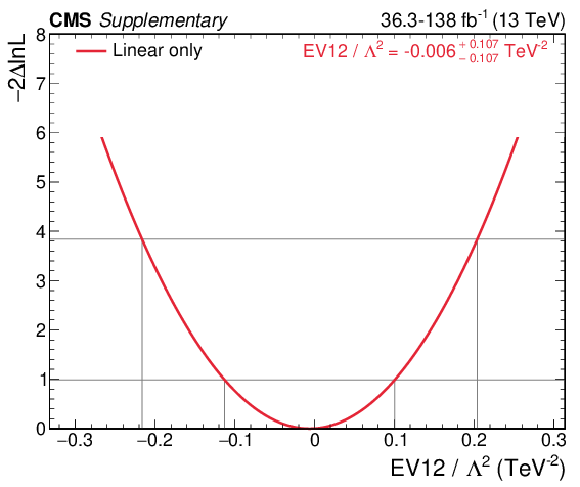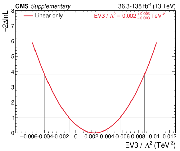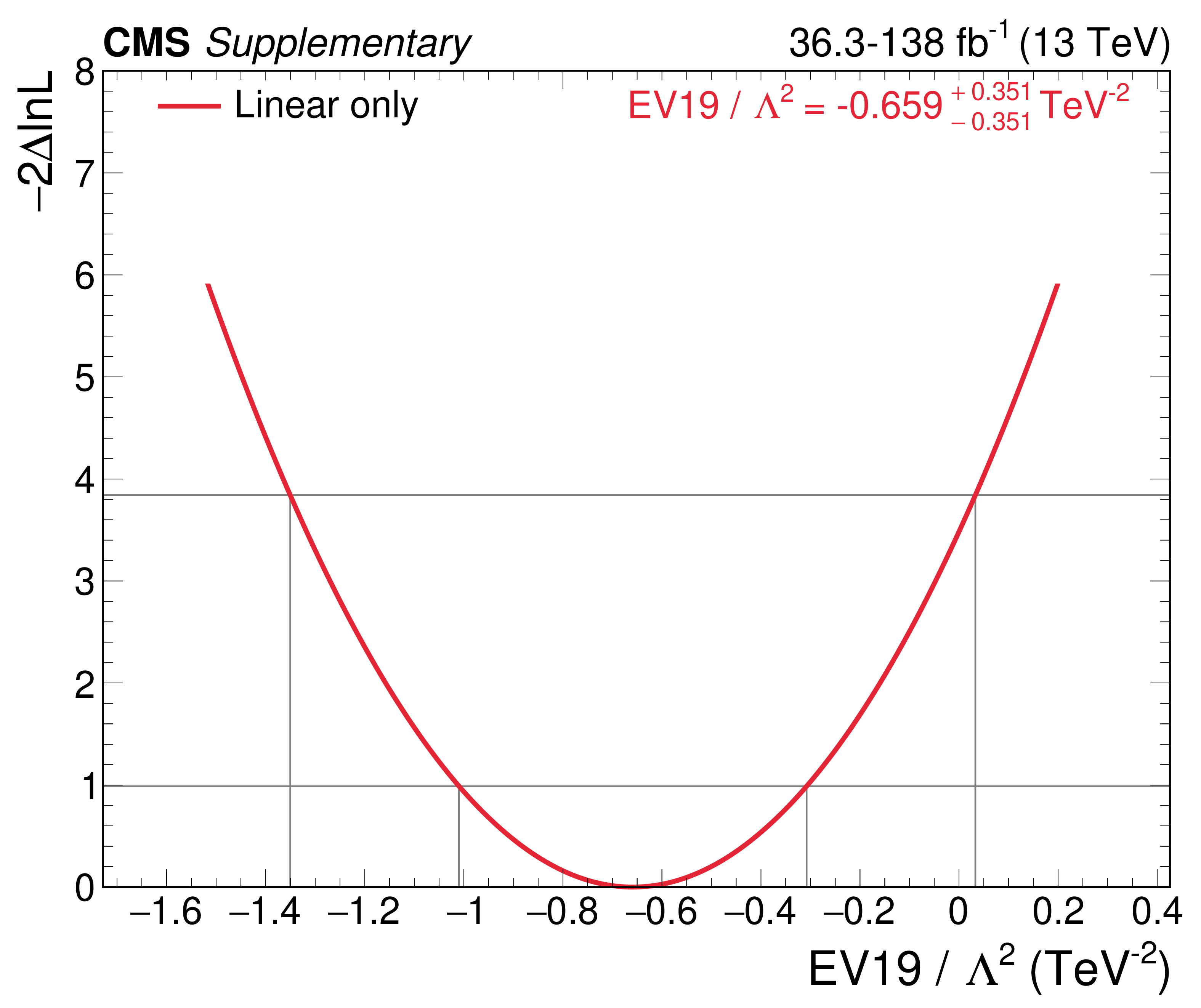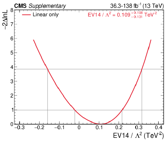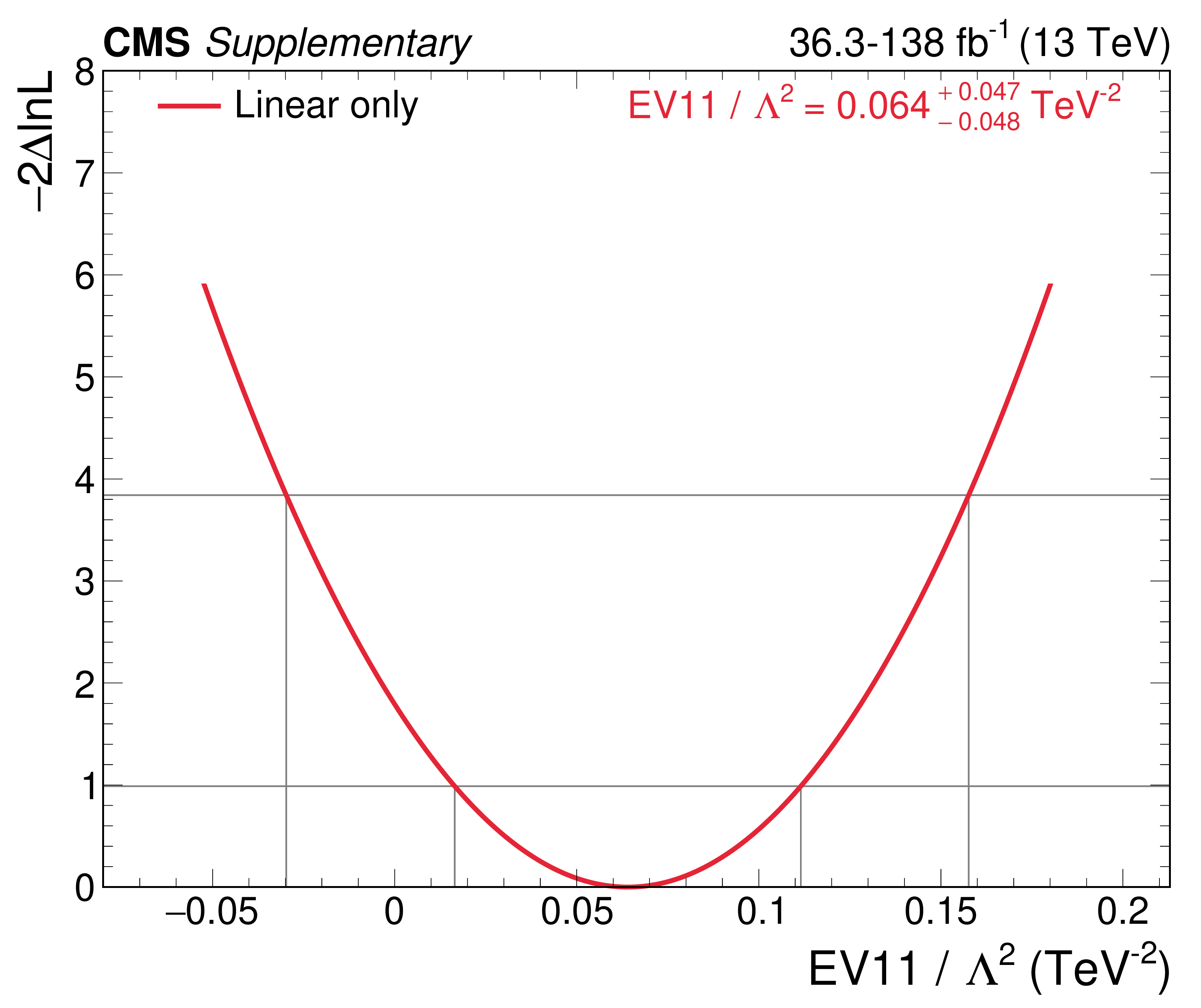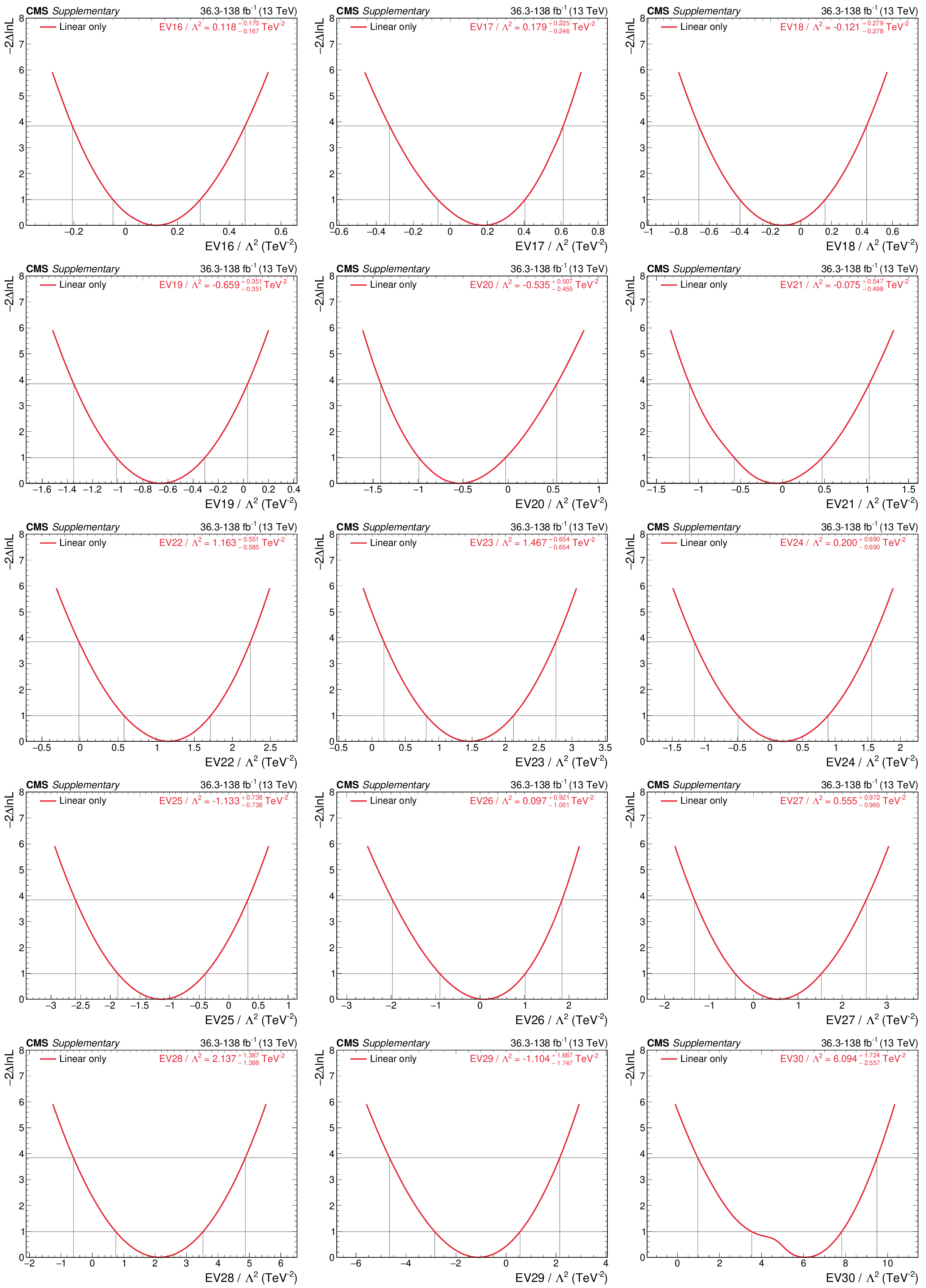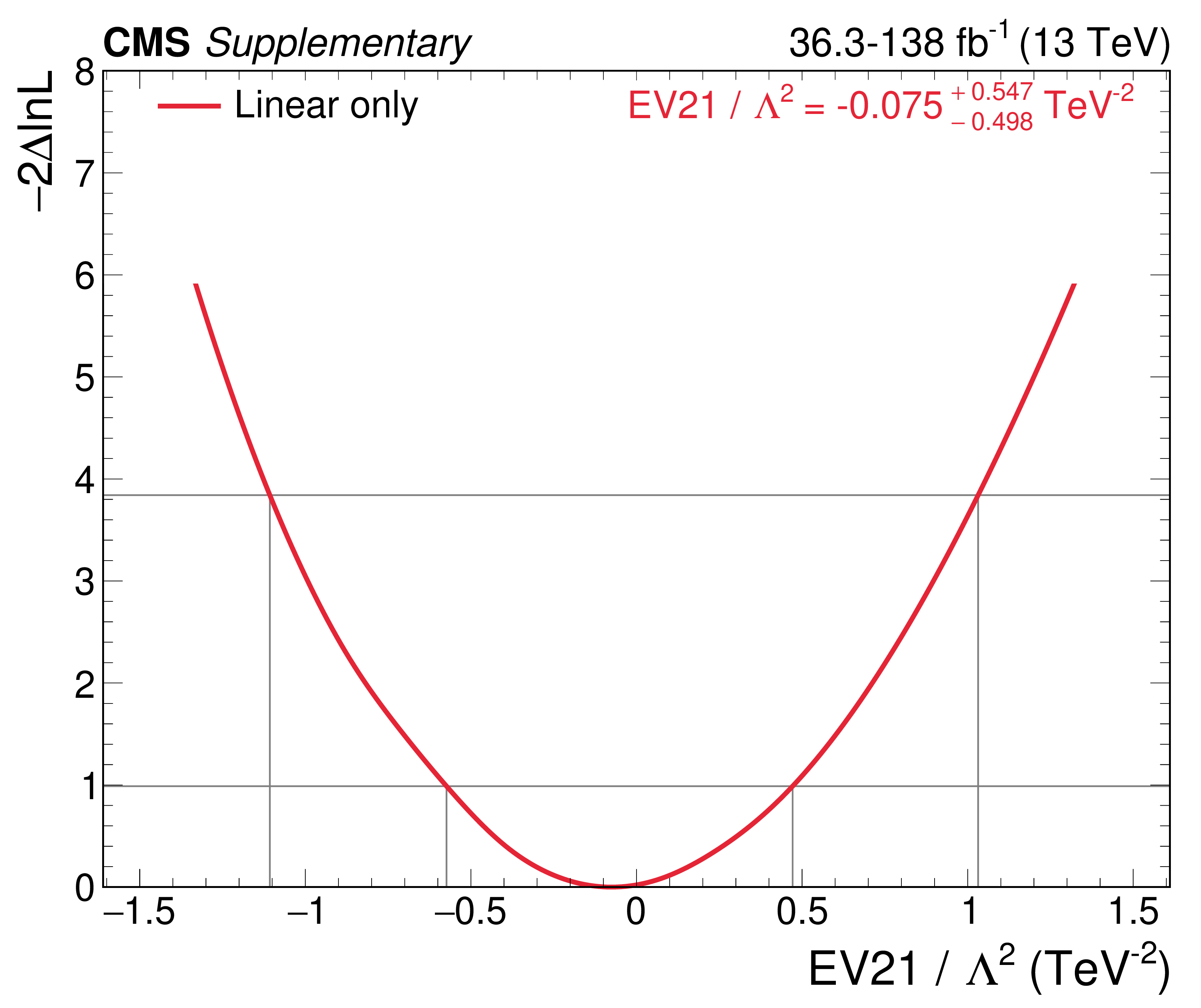 Definitions of eigenvectors and their eigenvalues in the measurement with the $ \mathrm{t}(\overline{\mathrm{t}})\mathrm{X} $ analysis excluded. The eigenvectors are labelled $ \mathrm{EV}n' $ to distinguish them from the eigenvectors in the combination that does include the $ \mathrm{t}(\overline{\mathrm{t}})\mathrm{X} $ inputs. Definitions of EV43'-EV55'. |