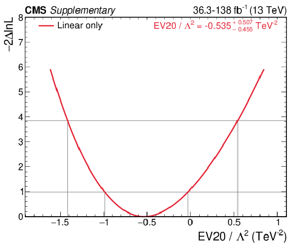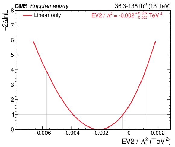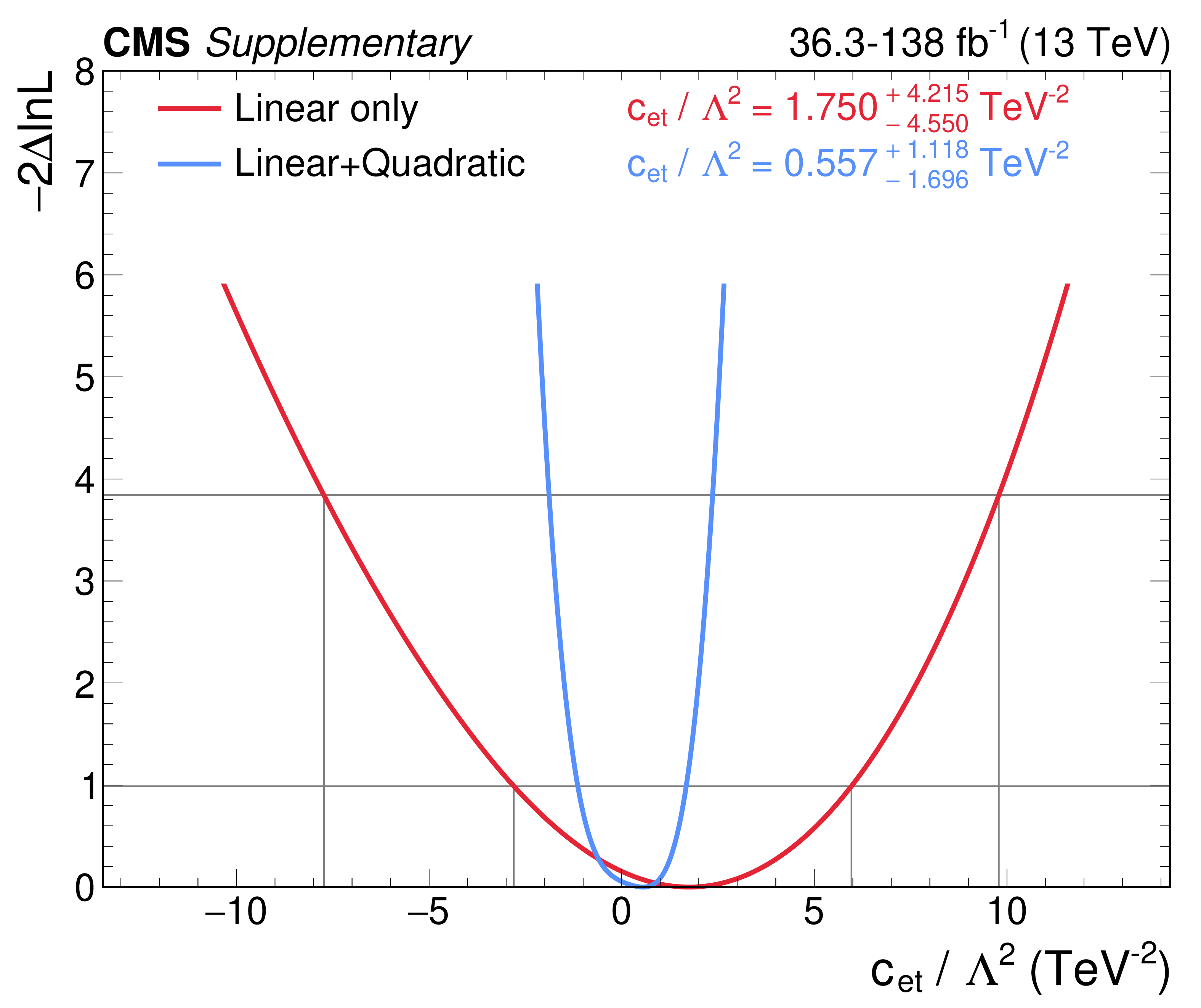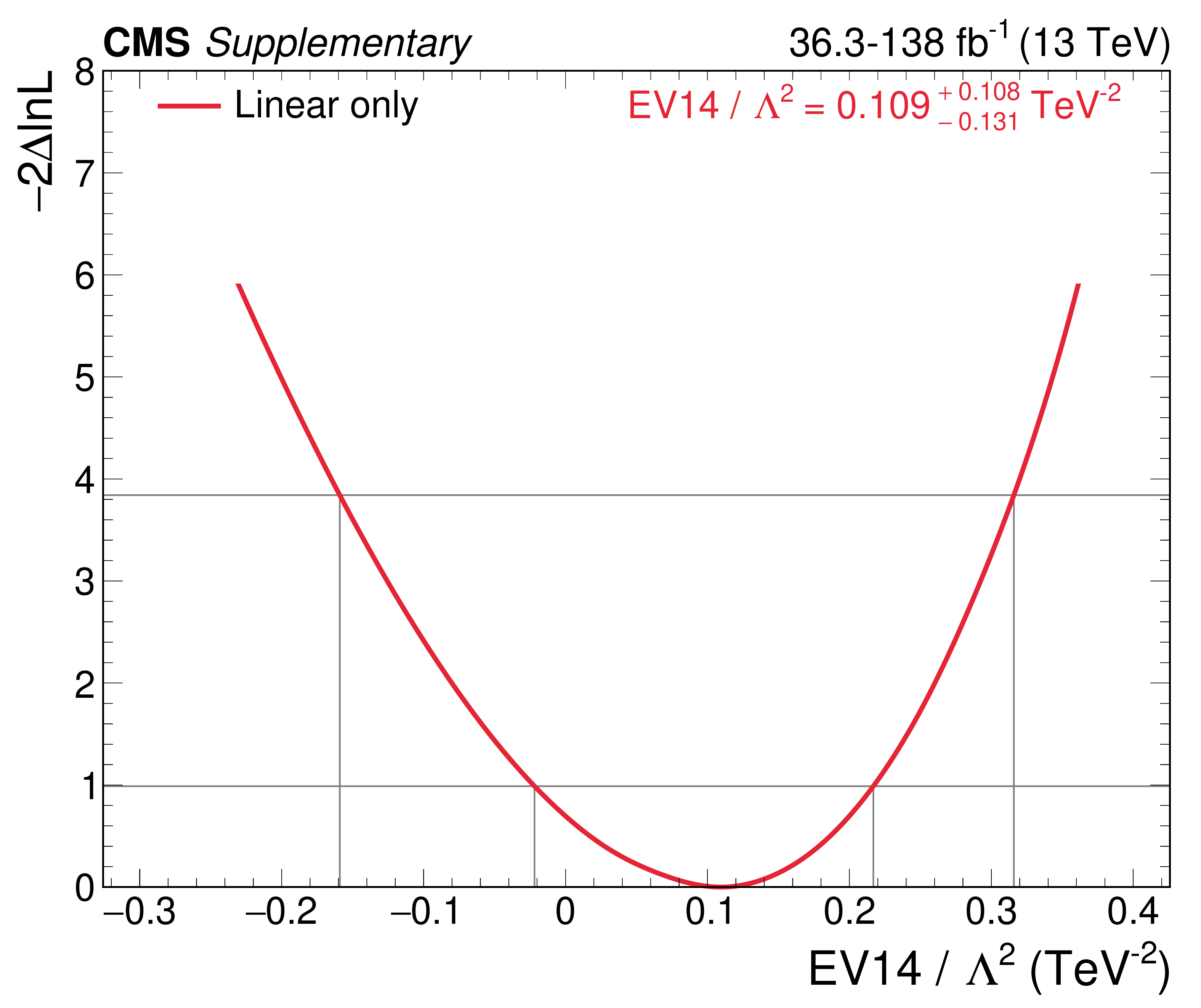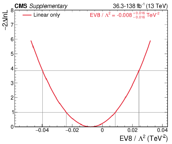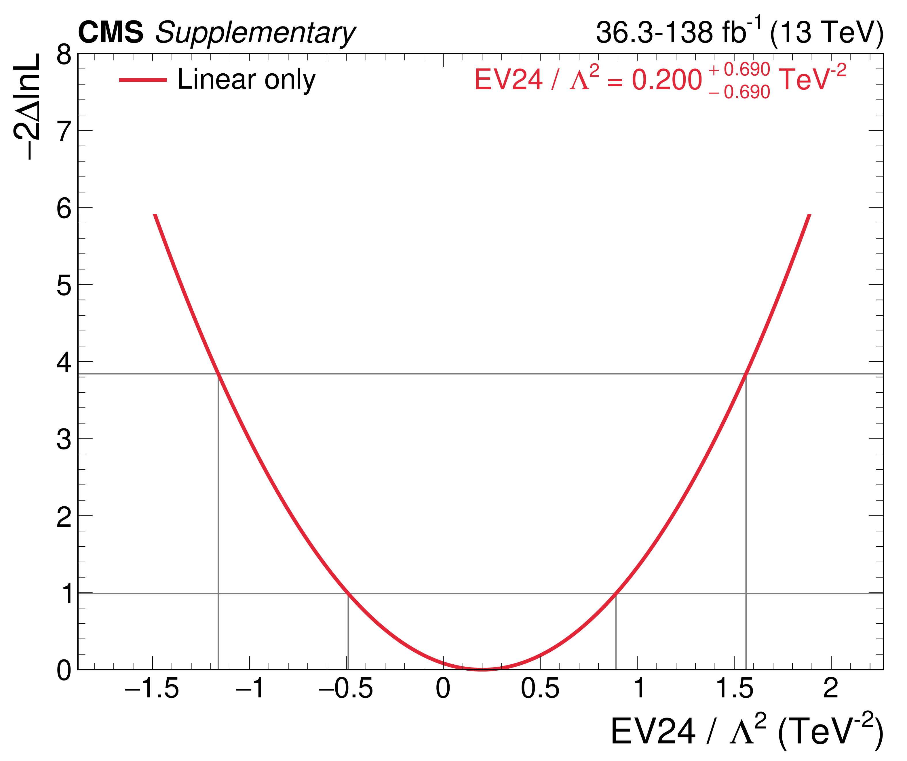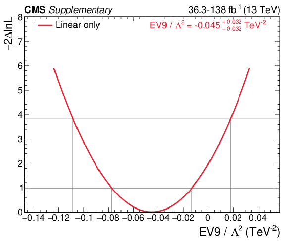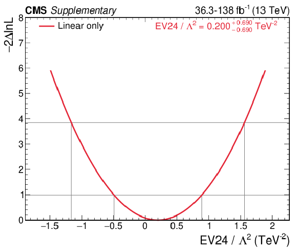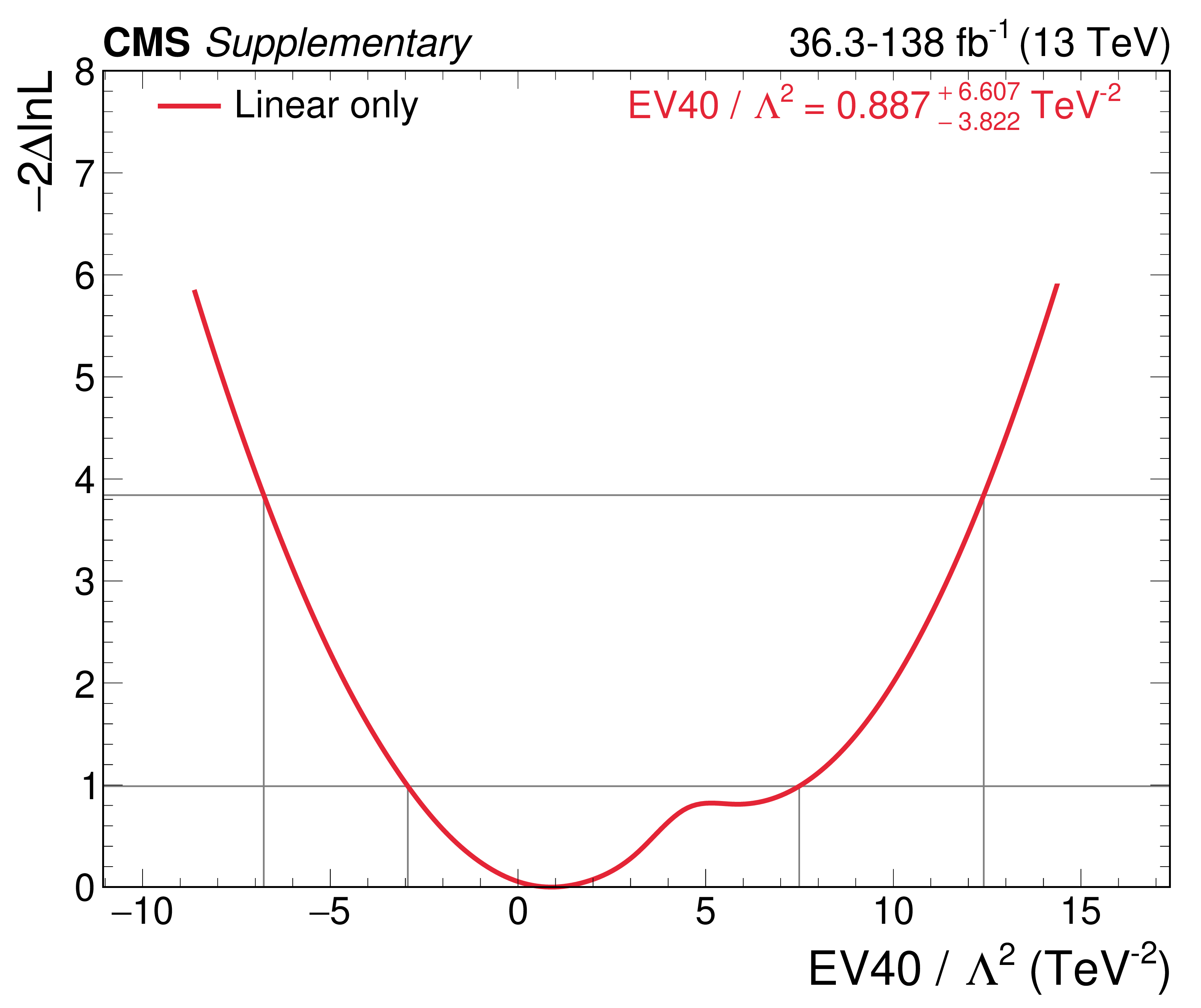 Definitions of eigenvectors and their eigenvalues in the measurement with the $ \mathrm{t}(\overline{\mathrm{t}})\mathrm{X} $ analysis excluded. The eigenvectors are labelled $ \mathrm{EV}n' $ to distinguish them from the eigenvectors in the combination that does include the $ \mathrm{t}(\overline{\mathrm{t}})\mathrm{X} $ inputs. Definitions of EV43'-EV55'. |
