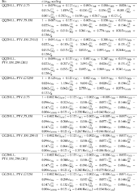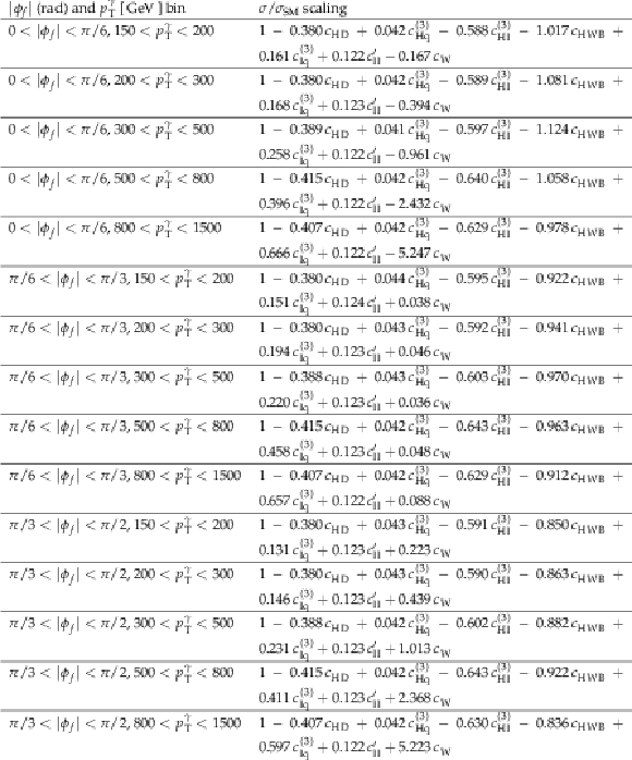 The 95% CL lower limits on the scales $ \Lambda_j $ for the indicated values of the WCs $ c_j $. |