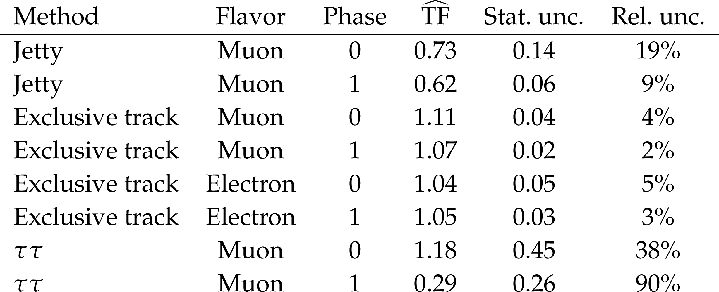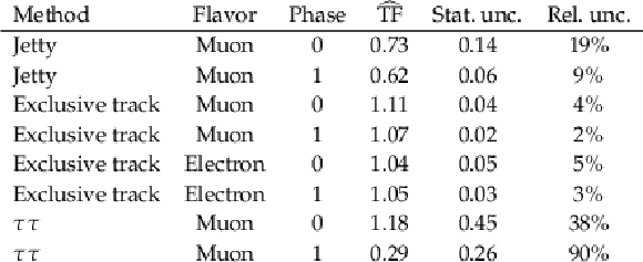 Transfer factors and their associated statistical uncertainties used to extrapolate background predictions from CRs to the SR. |