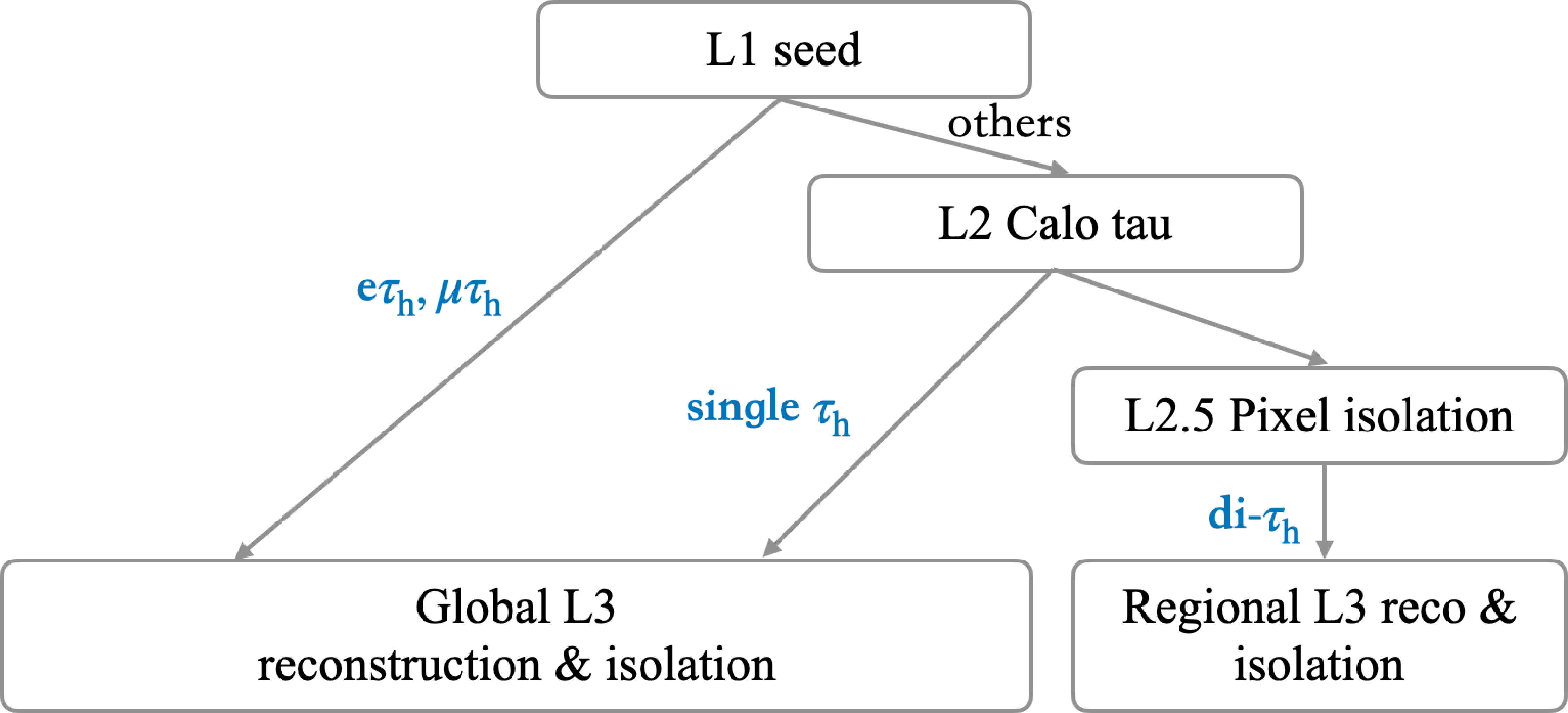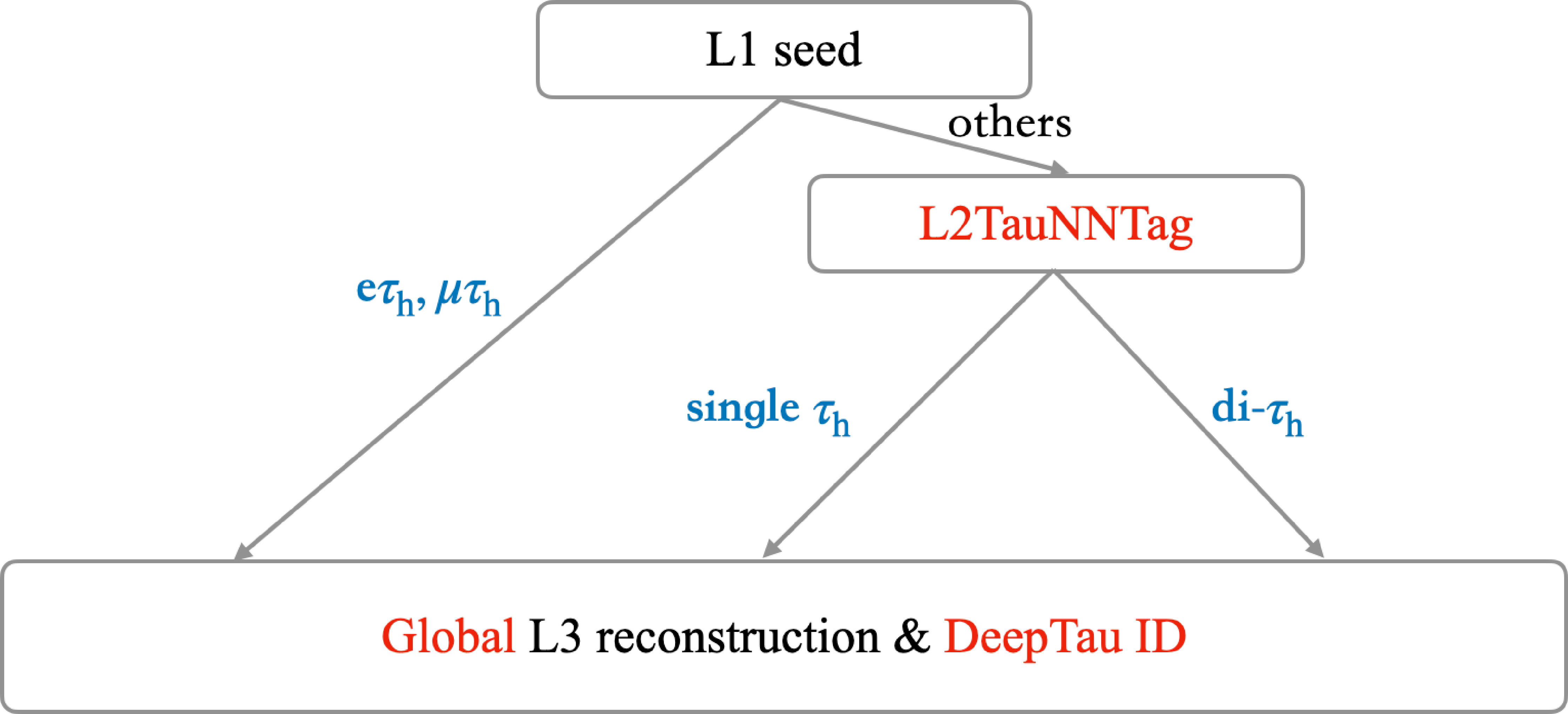 Workflows for $ \tau_\mathrm{h} $ candidate reconstruction at the HLT in Run 2 [21]. |