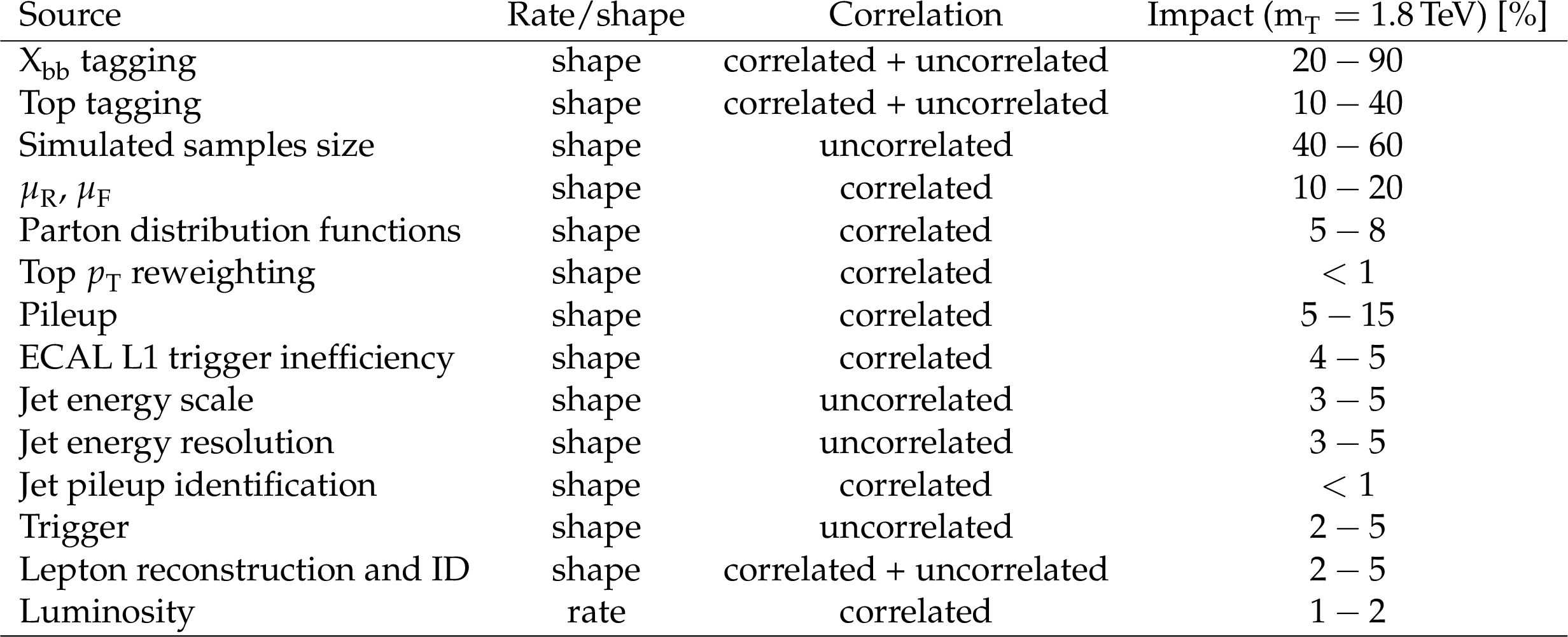 List of systematic uncertainties. For each source, it is described if it modifies the event rate or the distribution shape, and if the effect is correlated or uncorrelated across the years of data taking. All the listed sources affect both signal and background processes. The relative impact on the postfit signal strength is shown for a representative set of signals with $ \mathrm{m}_{{\mathrm{T}} } = $ 1.8 TeV and varying $ \mathrm{m}_{\phi} $. |