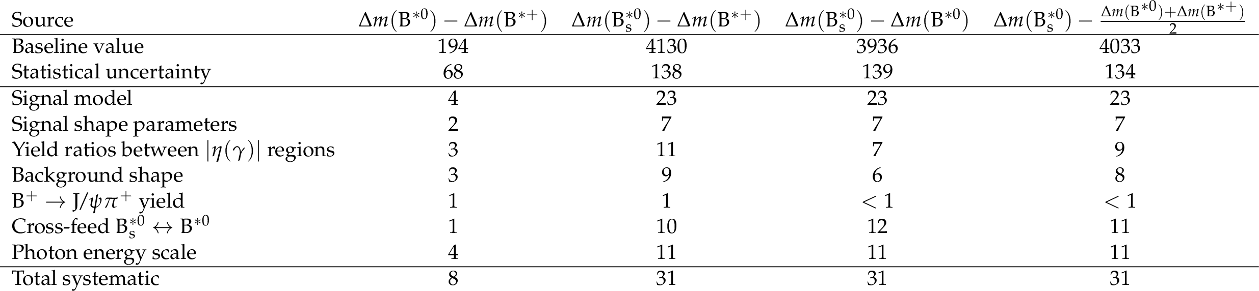 Values and systematic uncertainties of the measured ratios of the three mass differences. |