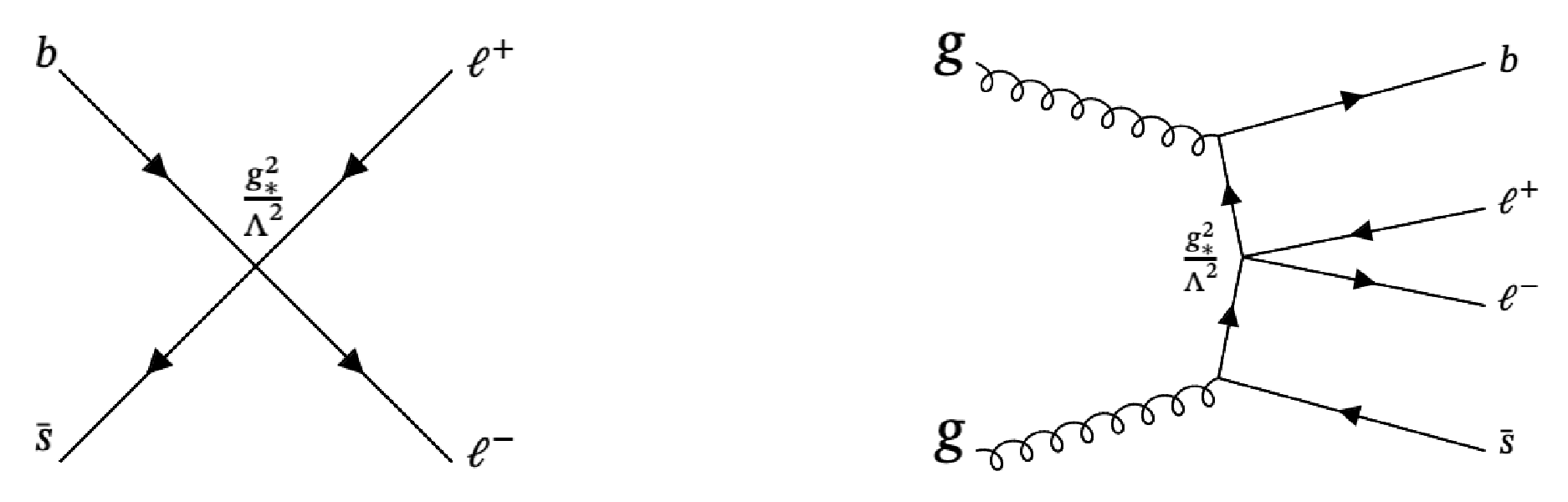 Representative Feynman diagrams for the production of dileptons via the $ \mathrm{b} \mathrm{s}\ell^{+}\ell^{-} $ operator at the LHC within the EFT approach. |