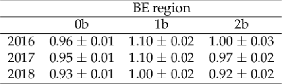 Observed scale factor and corresponding uncertainty in the $ Z $ boson control region for BE region in $ \mu\mu $ channel. |
