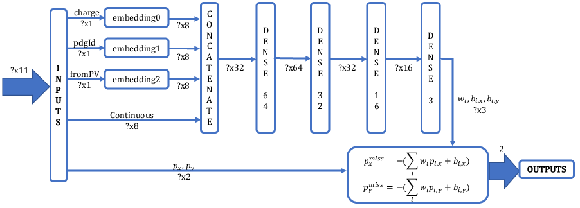 DeepMET DNN architecture. For each event, all particles in the event are considered as input. Since the number of particles varies event by event, the exact dimension is unknown and is indicated by a question mark. |
