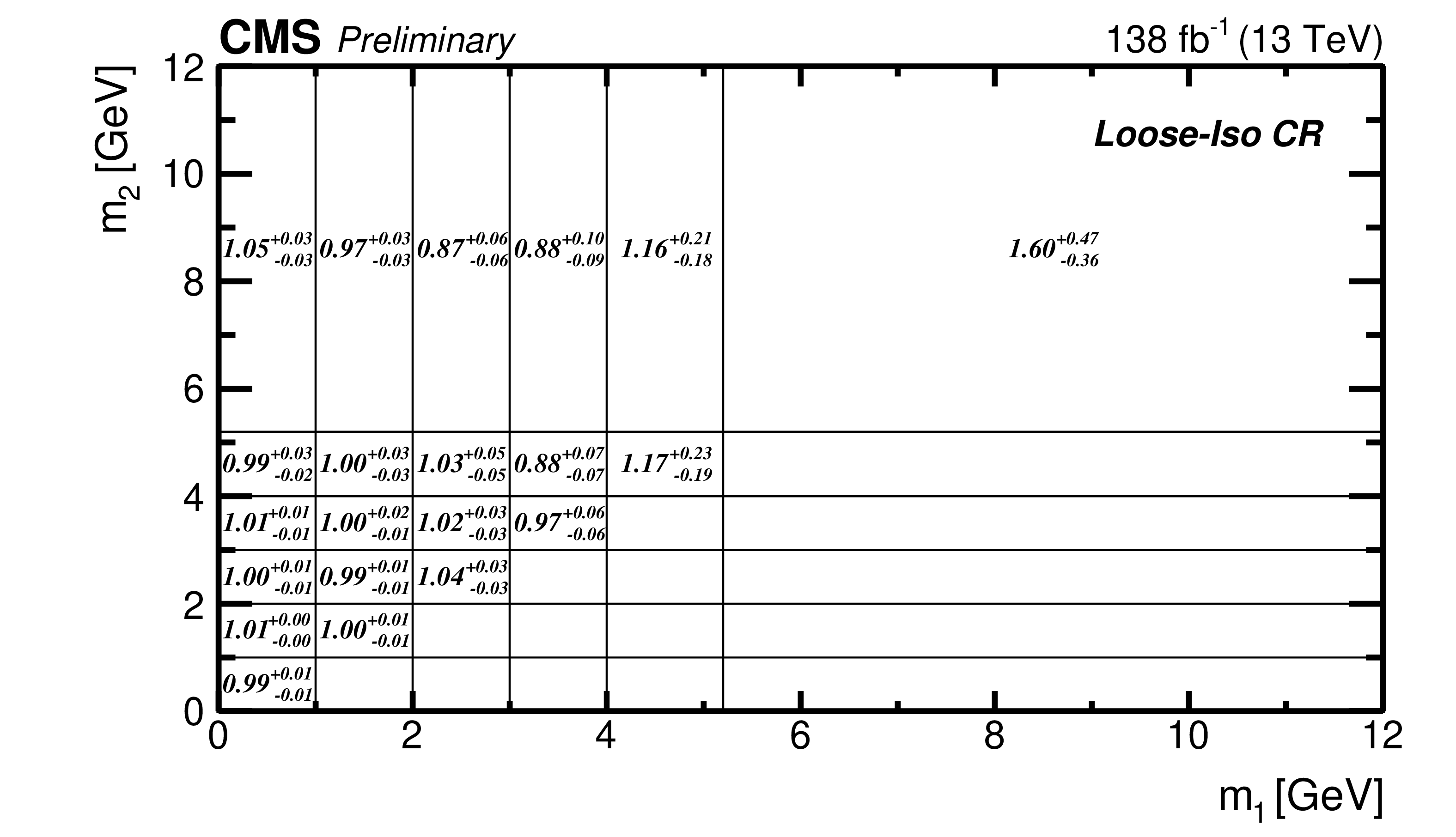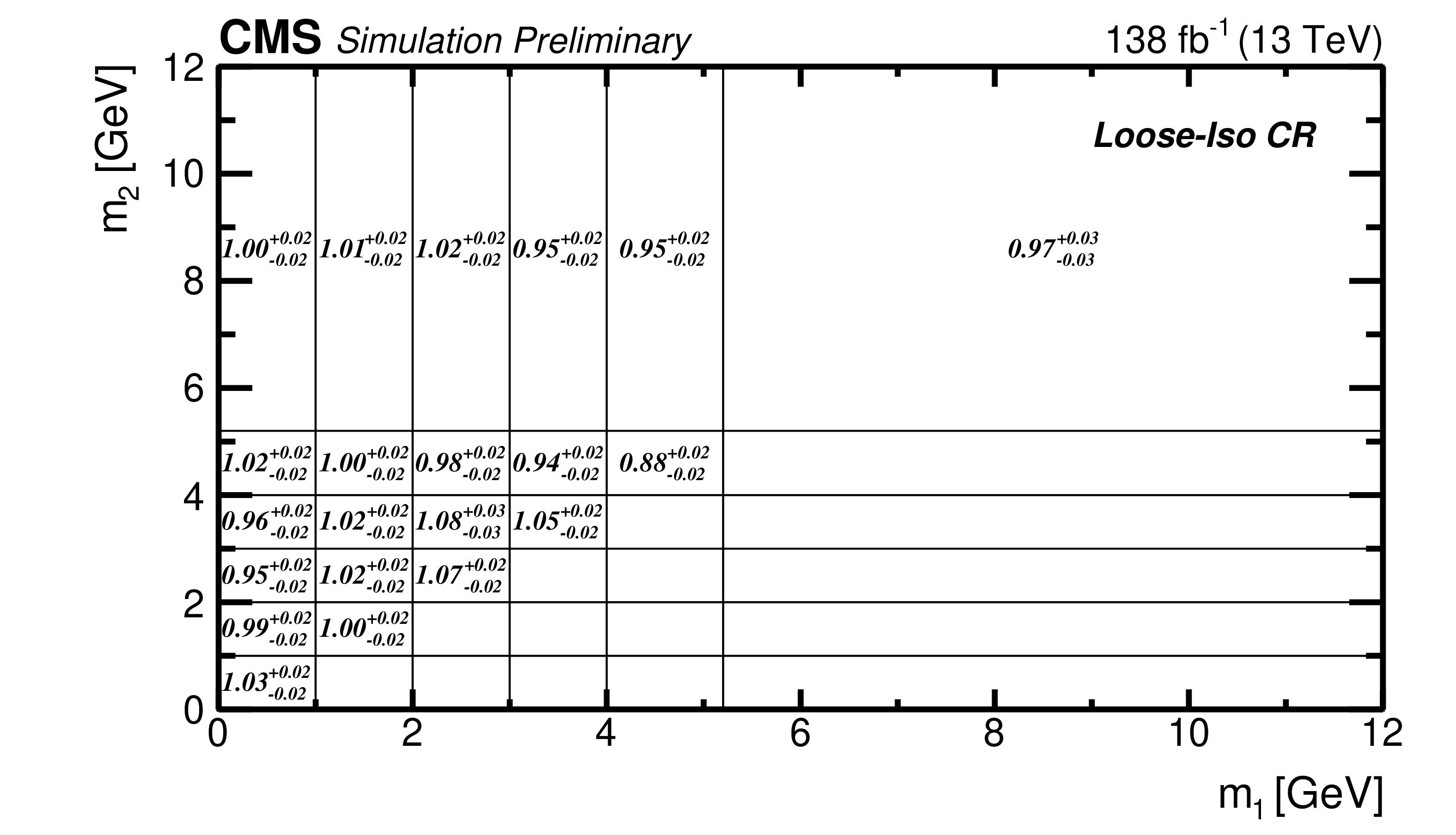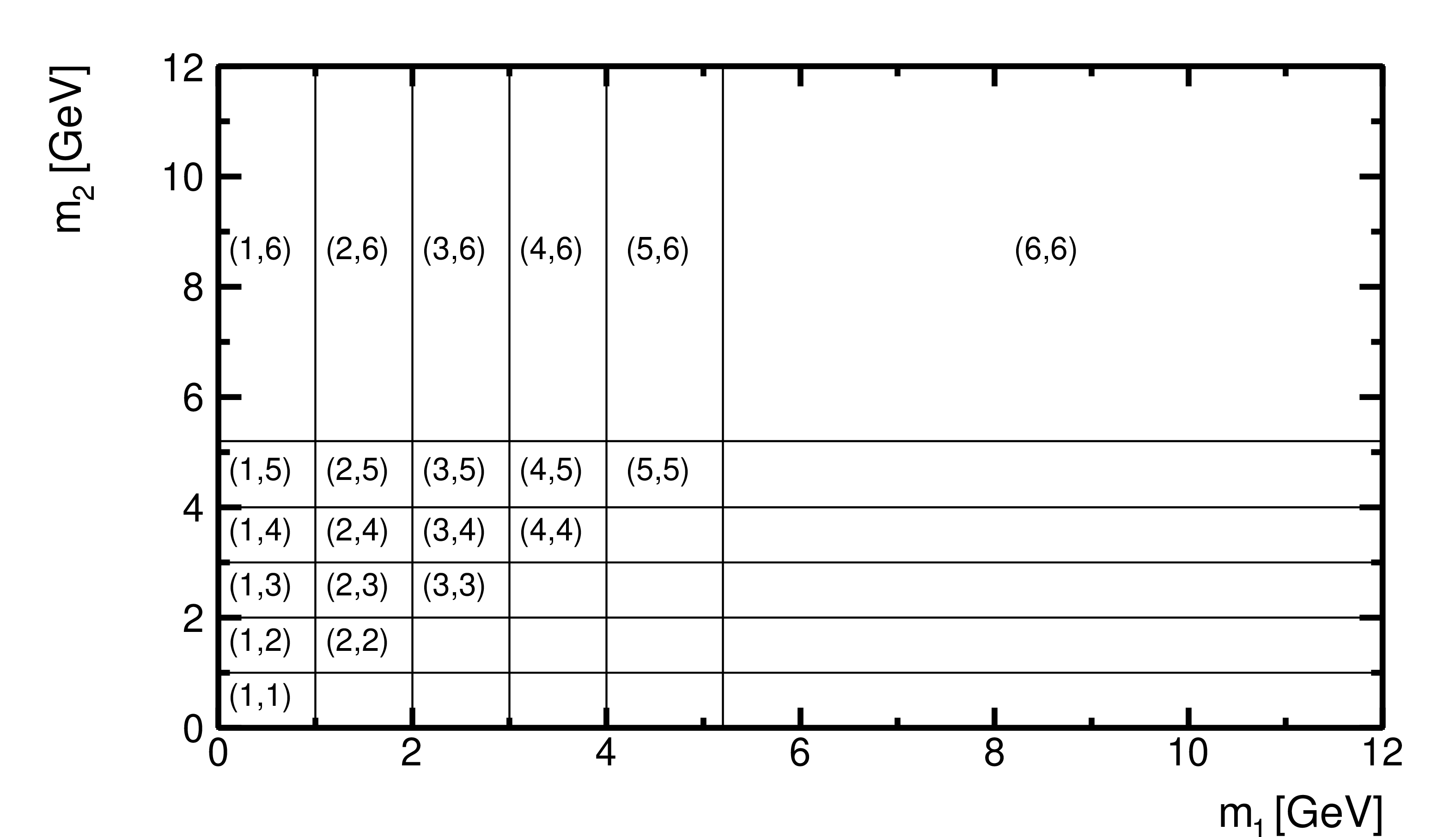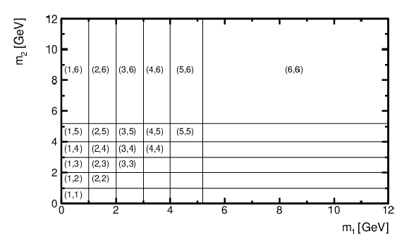 Binning of the 2D ($ m_1,m_2 $) distribution.